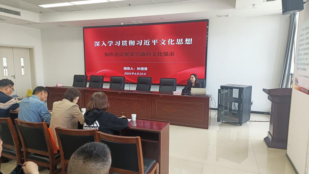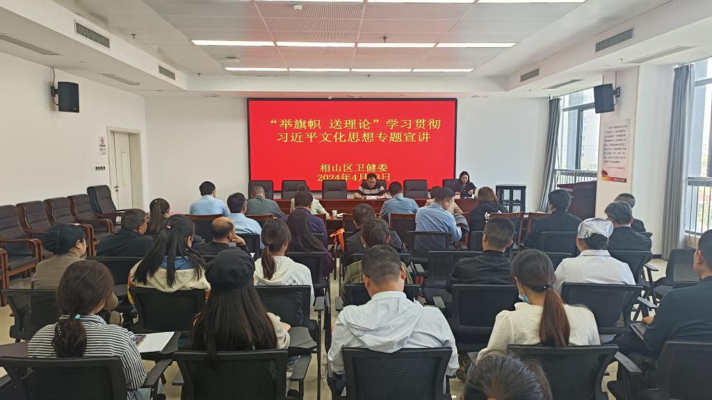 4月23日下午,淮北市相山区卫生健康系统“举旗帜·送理论”学习贯彻习近平文化思想宣讲报告会在相山区人民医院召开。必赢3003no1线路检测中心孙澄澄作为淮北市委宣讲团成员,受邀作题为《深入学习贯彻习近平文化思想·加快建设繁荣兴盛的文化强市》的宣讲报告。相山区卫生健康委班子成员全体参会,相山区卫生健康委党委书记柳泰主持会议。